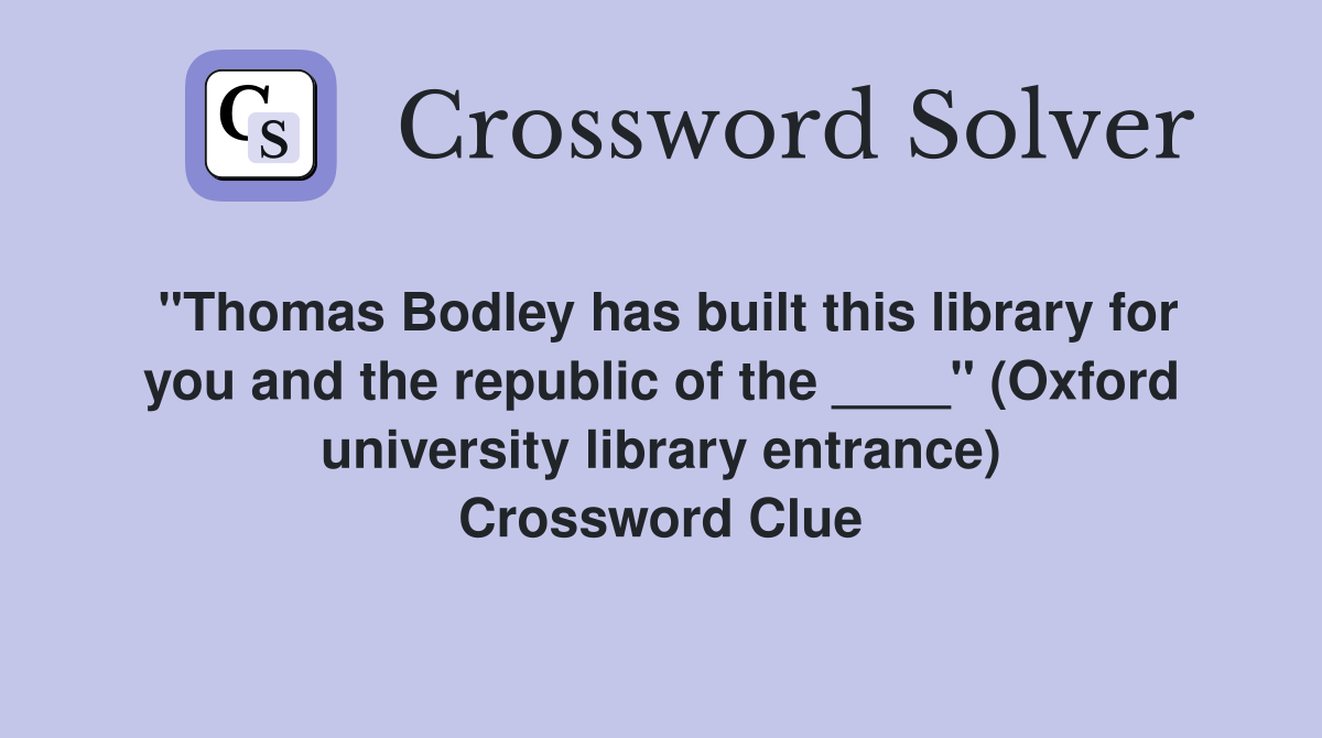 quot Thomas Bodley has built this library for you and the republic of the