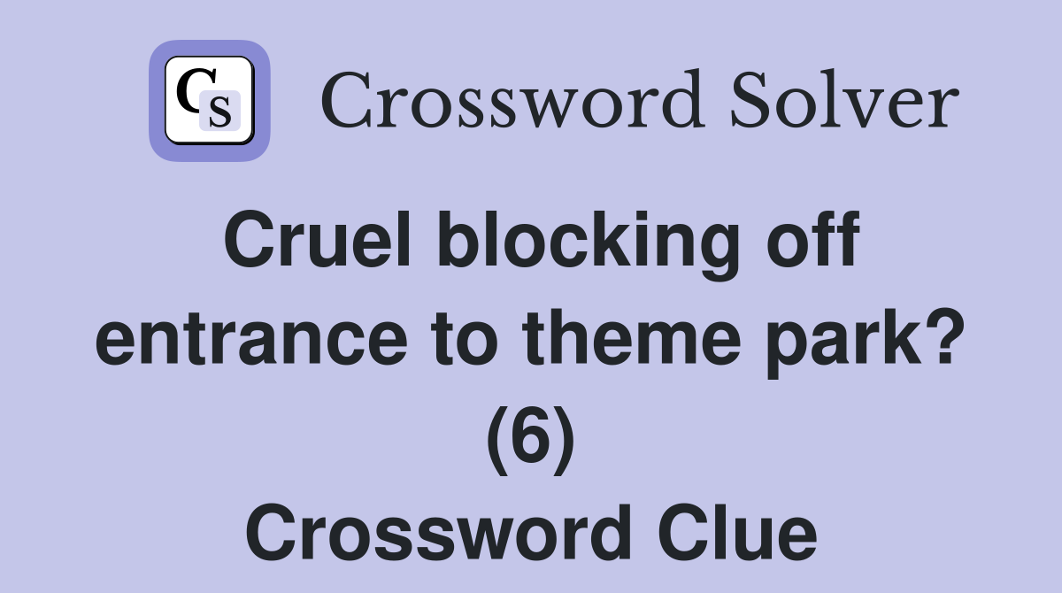 Cruel blocking off entrance to theme park? (6) Crossword Clue Answers