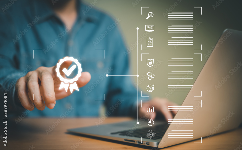 Entrepreneur point at certificate icon that show top service quality