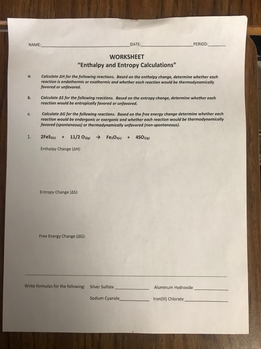 Solved NAME DATE ERIOD WORKSHEET quot Enthalpy and Entropy Chegg com