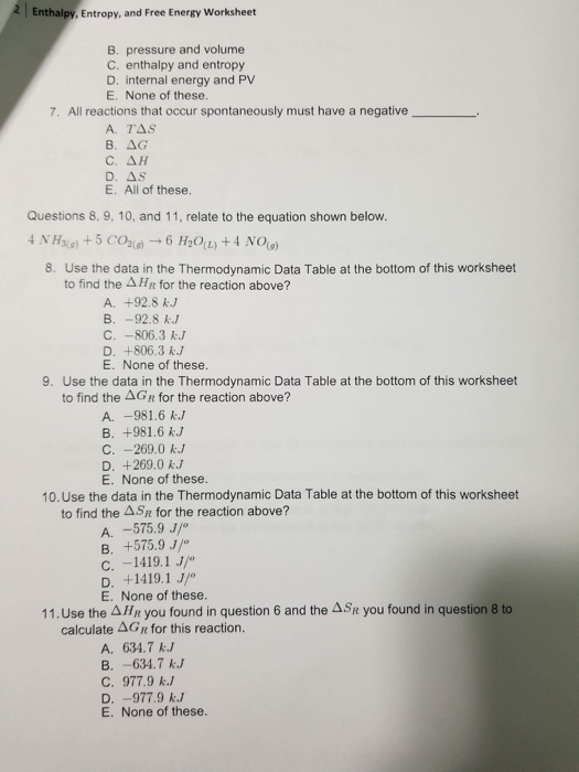 Entropy and Gibbs Free Energy Worksheet Answers DocsLib