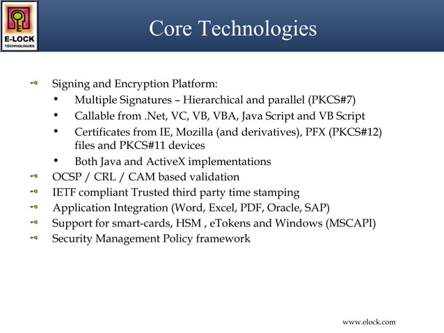 E Lock digital signature solutions PPT