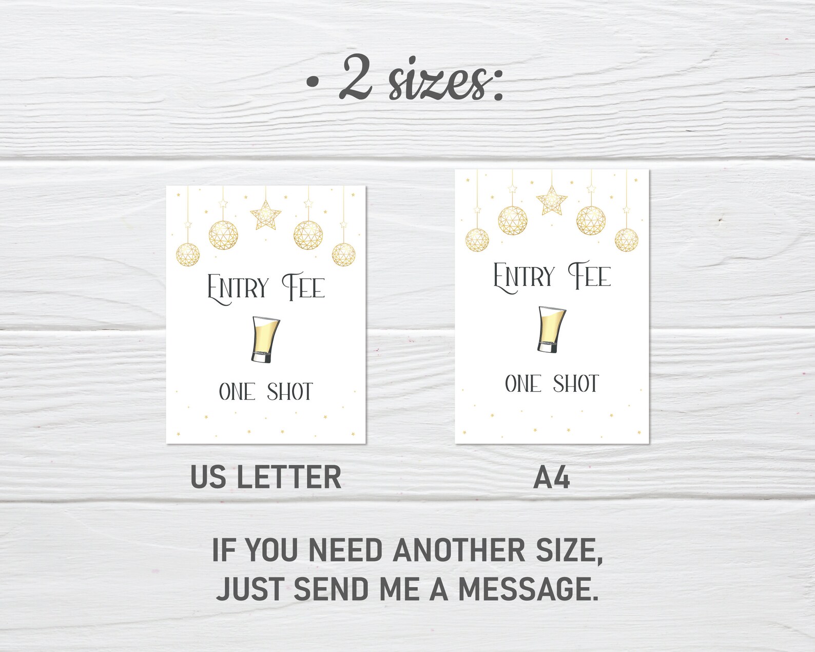 Entry Fee One Shot Sign Printable New Year Party Sign Christmas Party
