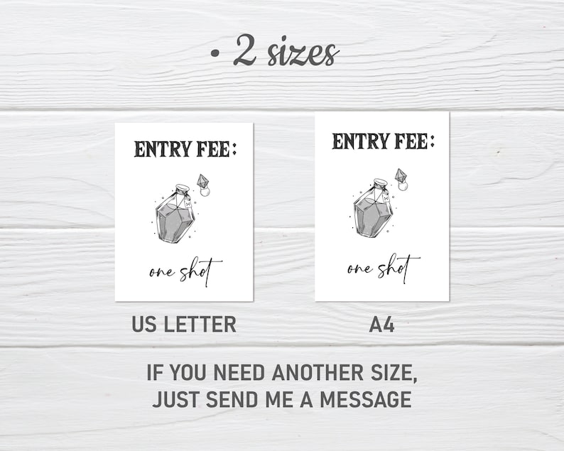 Entry Fee One Shot Sign PrintableParty Decor Party Etsy in