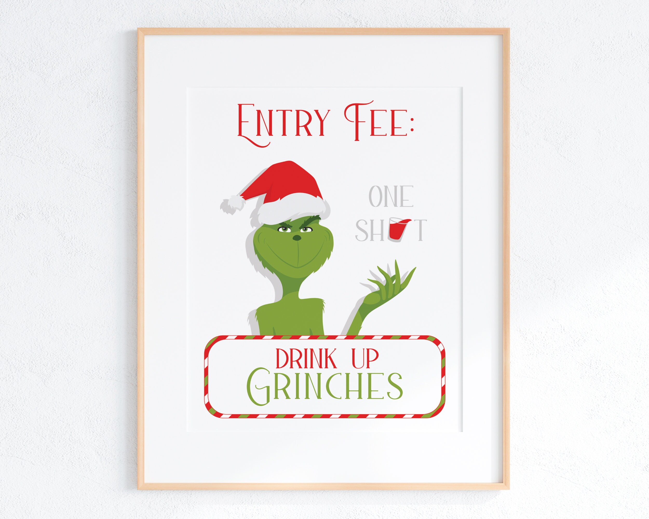 Entry Fee One Shot Sign Printable Drink up Grinches Christmas Party