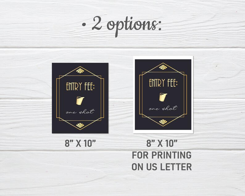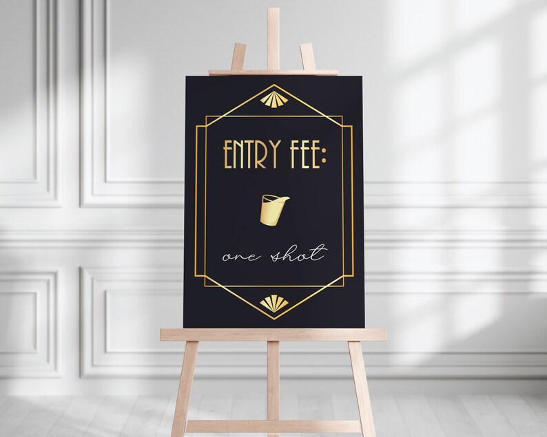 Entry Fee One Shot Sign Printable Gatsby Party Sign 20s Etsy