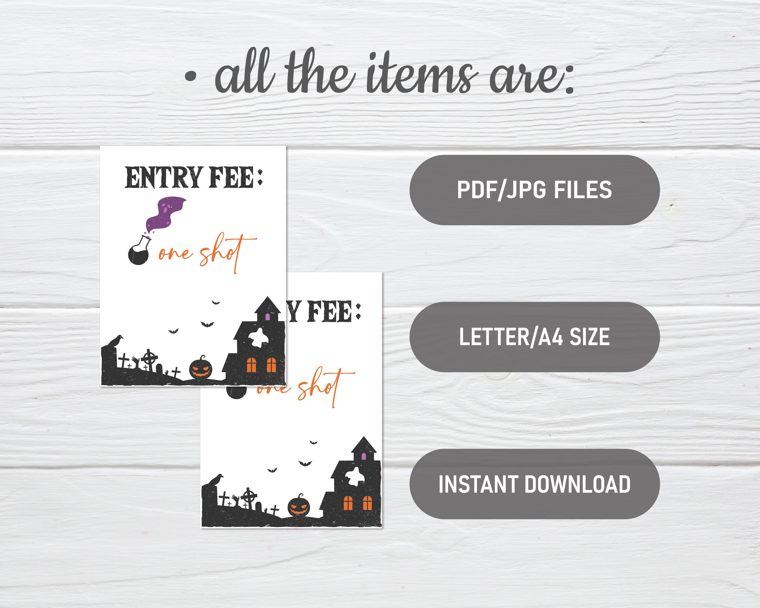 Entry Fee One Shot Sign PrintableHalloween Party Etsy