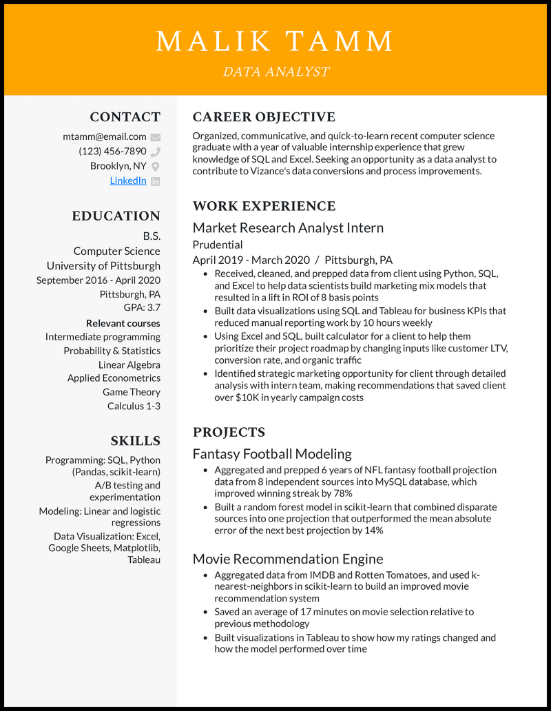 Entry Level Data Analyst Resume Example for 2022 Resume Worded