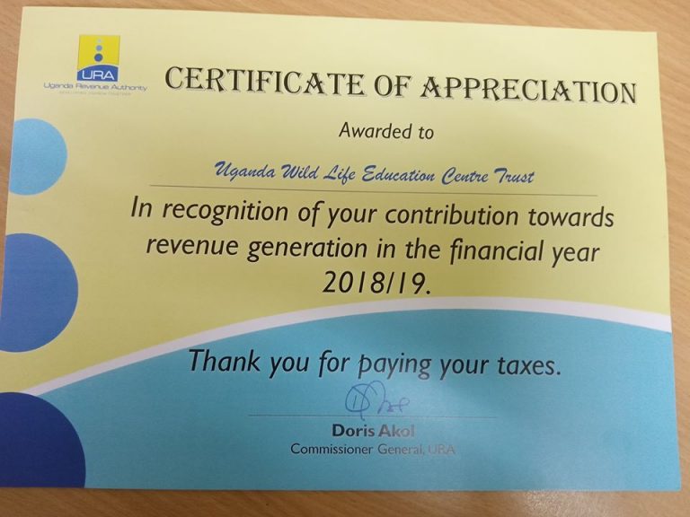 Certificate of Appreciation Uganda Wildlife Conservation Education Centre