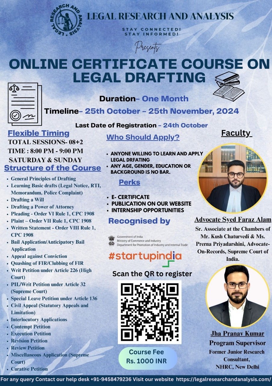 Certificate Course on Legal Drafting Covering the law