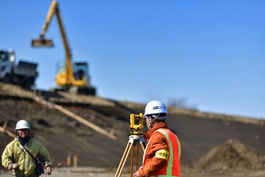 Premium Photo Survey engineer in construction site use theodolite