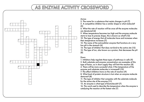 A Level Biology: Crossword Pack on Enzyme Structure and Activity
