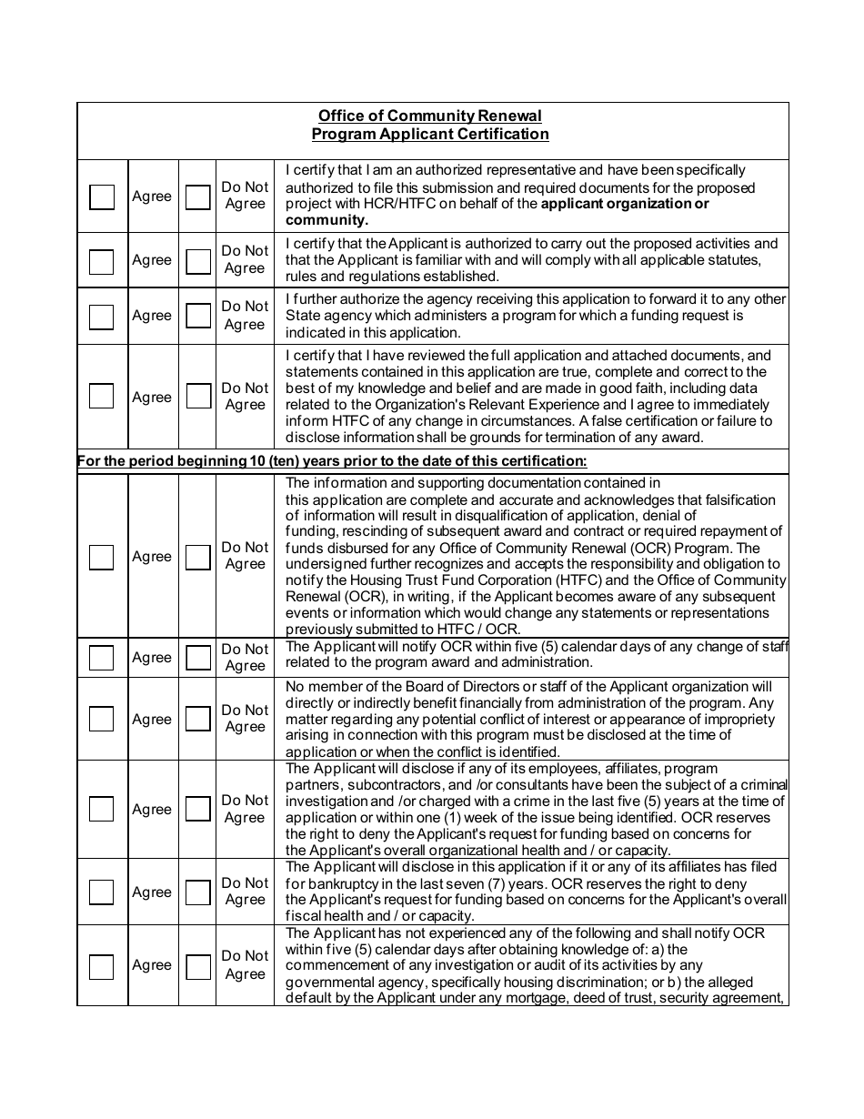 New York Program Applicant Certification Office of Community Renewal