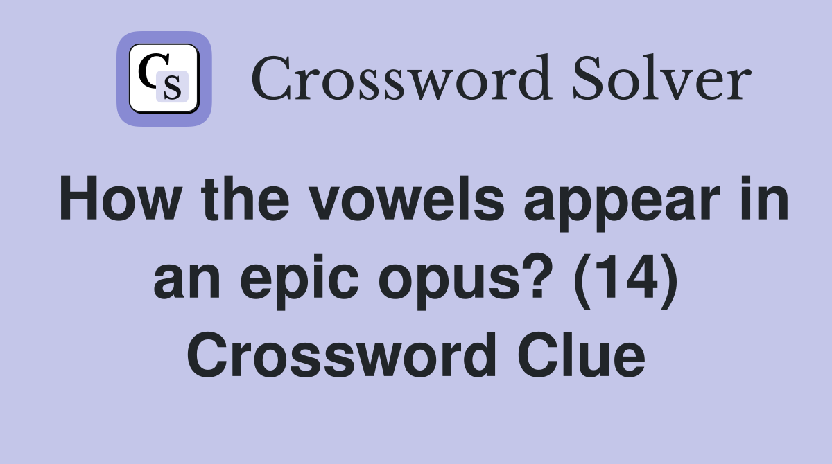 How the vowels appear in an epic opus? (14) Crossword Clue Answers