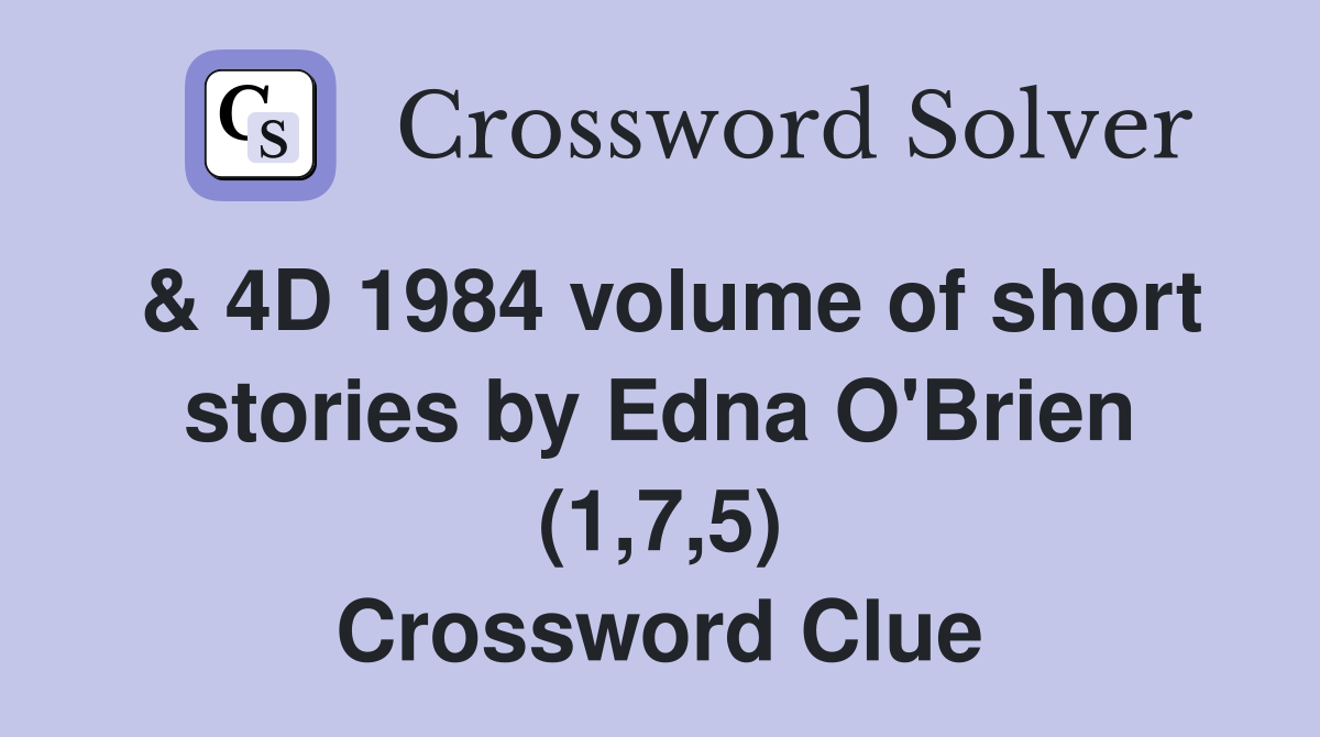 4D 1984 volume of short stories by Edna O #39 Brien (1 7 5) Crossword