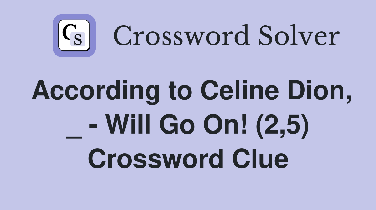 According to Celine Dion Will Go On (2 5) Crossword Clue