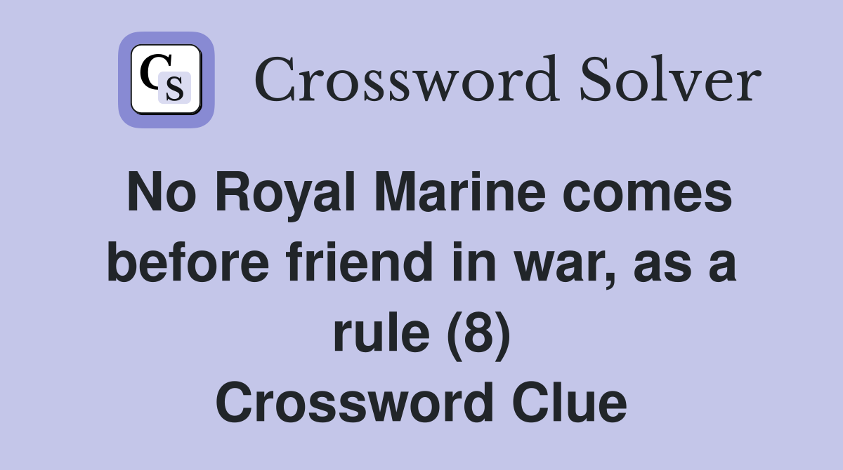 No Royal Marine comes before friend in war as a rule (8) Crossword