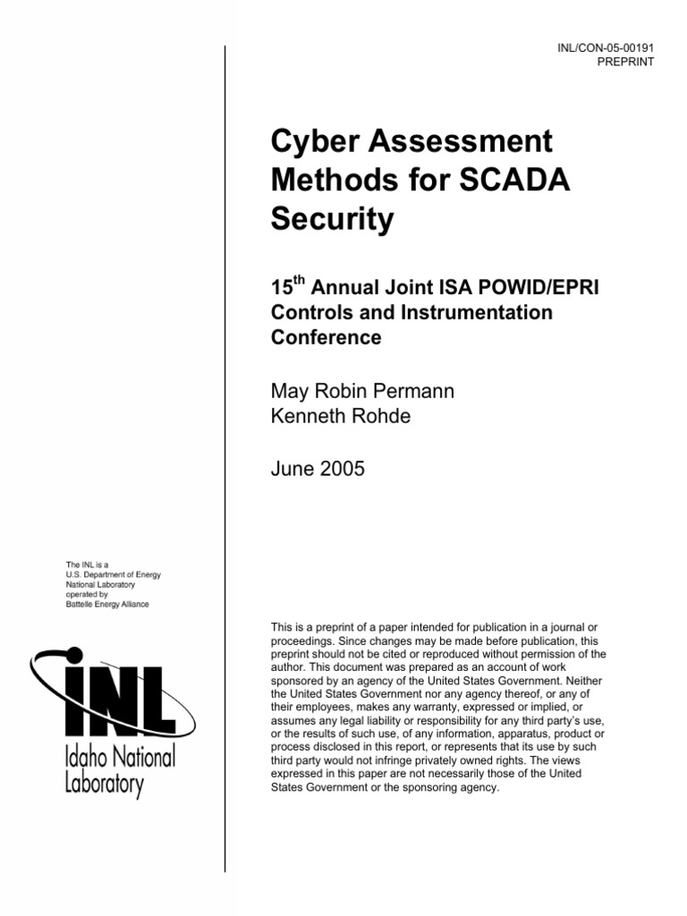 Cyber Assessment Methods For SCADA Security: 15 Annual Joint ISA POWID