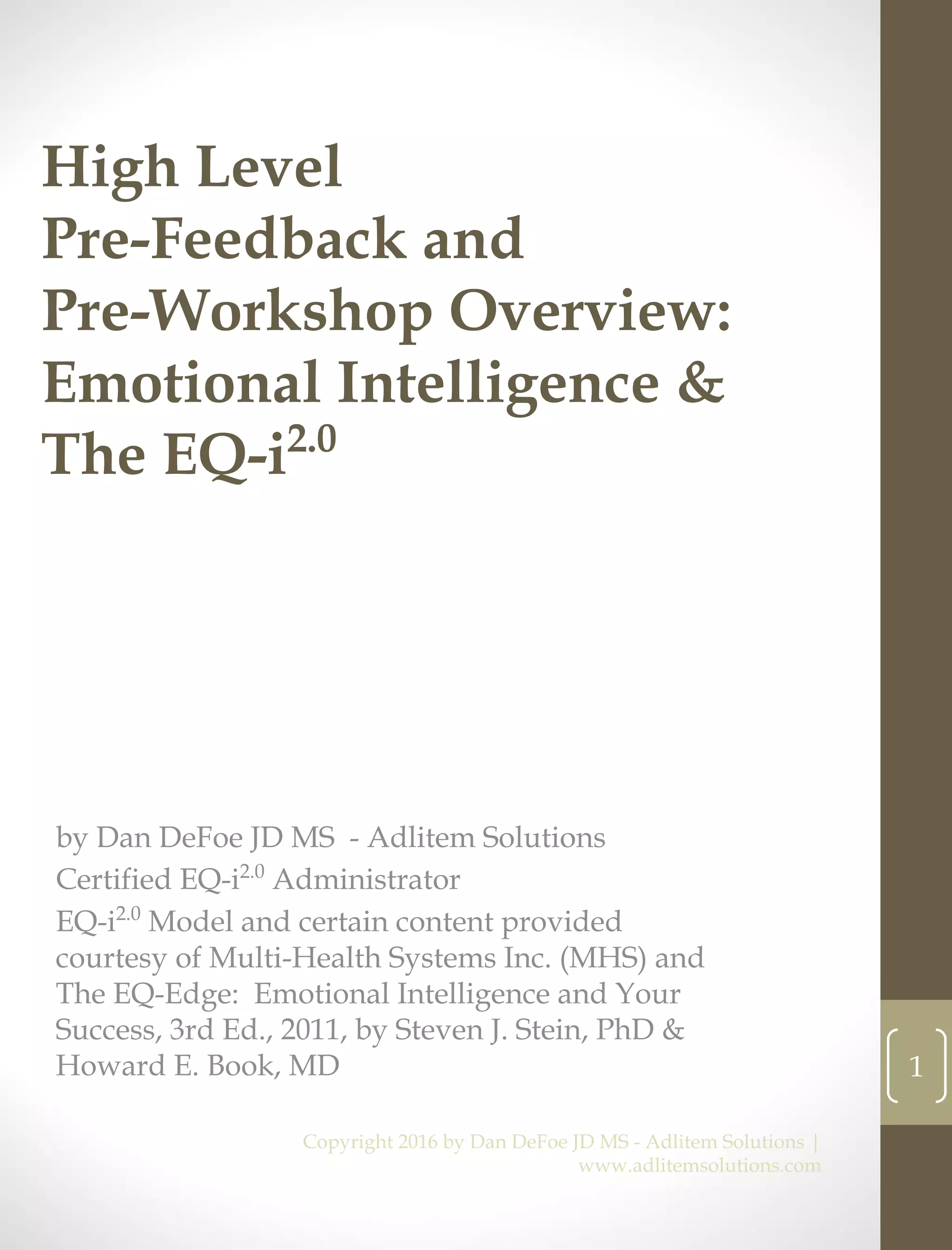 Register for Our Emotional Intelligence EQ i2 0 EQ360 Online
