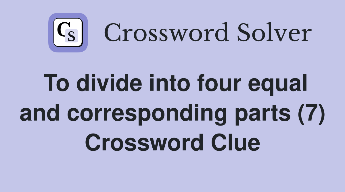 To divide into four equal and corresponding parts (7) Crossword Clue