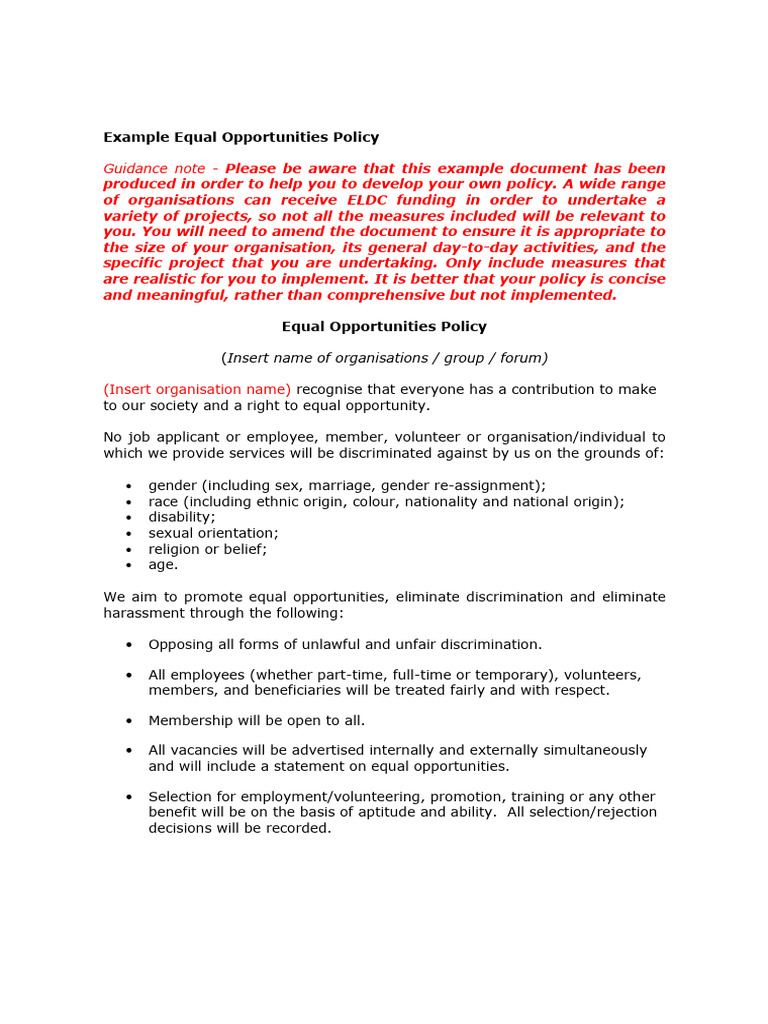 Equal Opportunities Policy Equality and Diversity Policy Sample