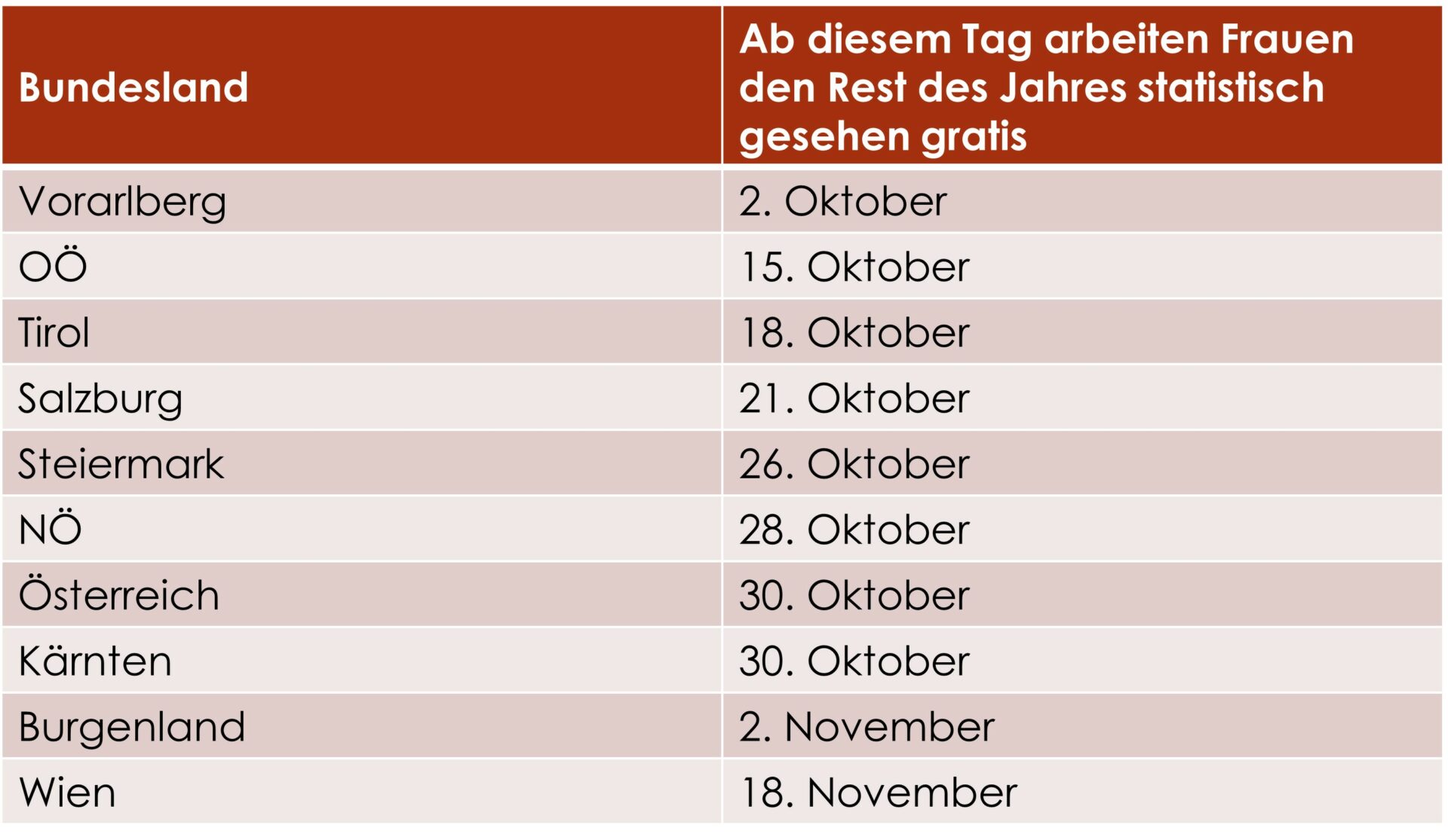 Wann ist Equal Pay Day 2022 in Österreich den Bundesländern?