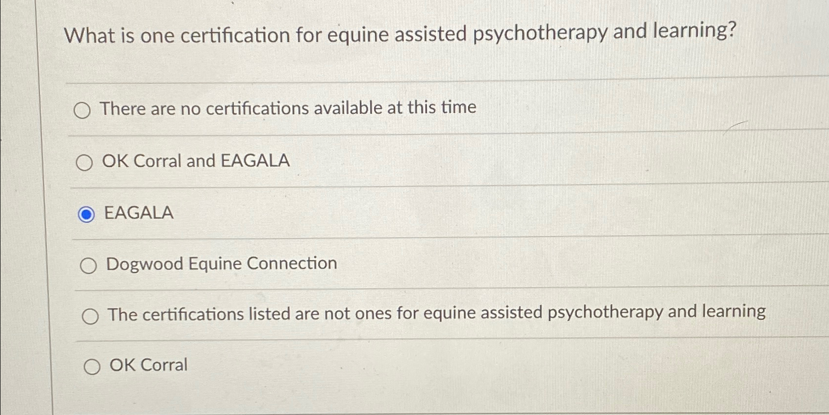 Solved What is one certification for equine assisted Chegg com