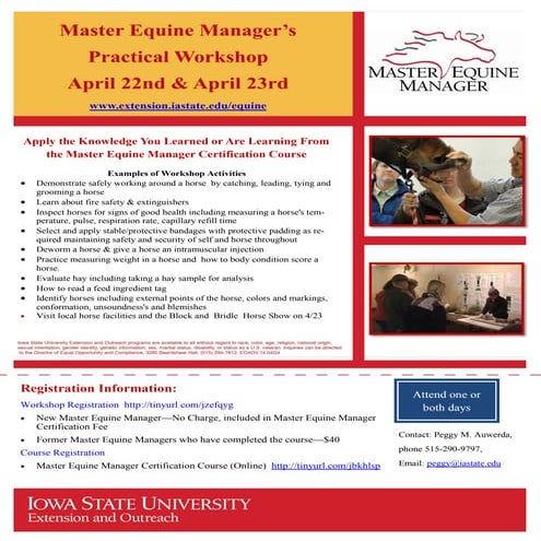 ISU Master Equine Manager Certification Practical Workshop PDF