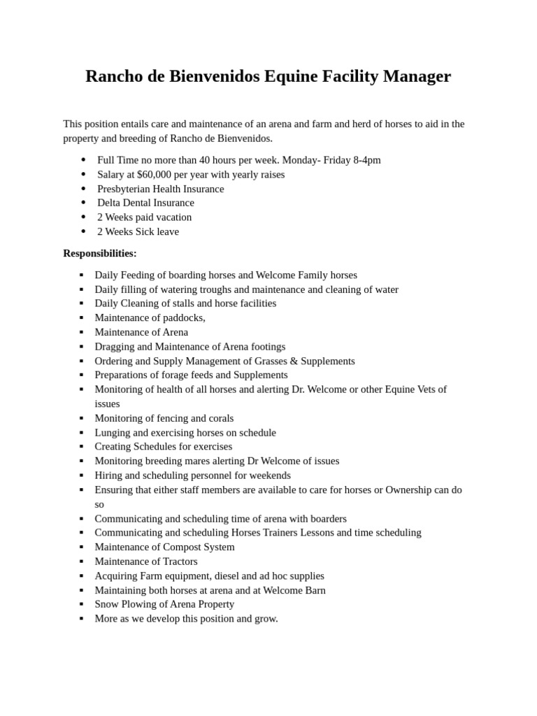 Rancho de Bienvenidos Equine Facility Manager PDF