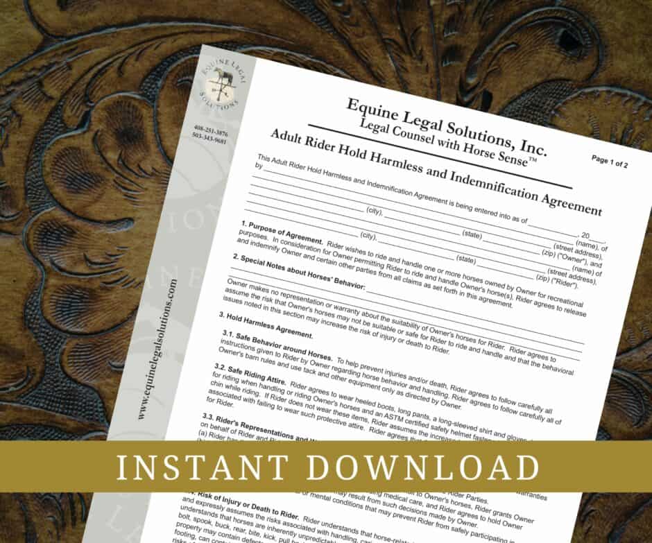 Hold Harmless Agreement for Individual Horse Owners Equine
