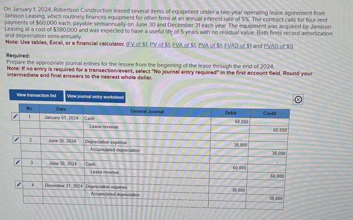 Solved On January 1 2024 Robertson Construction leased Chegg com