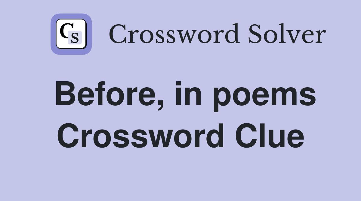 Before in poems Crossword Clue Answers Crossword Solver