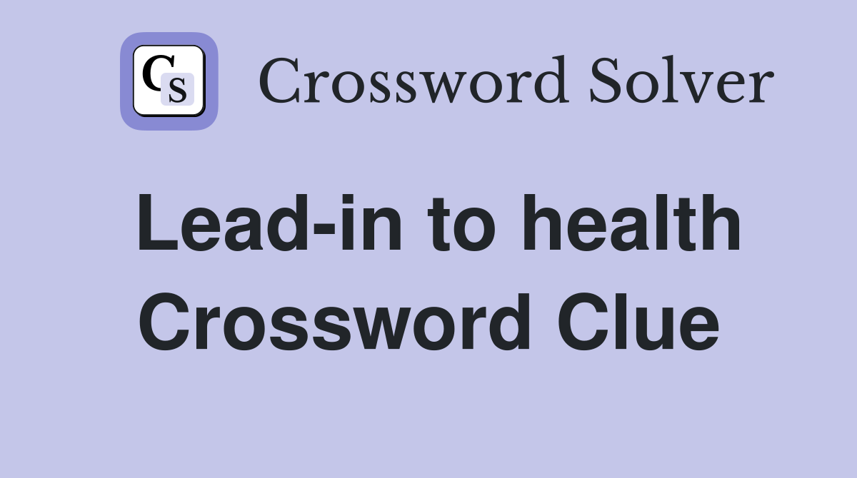 Lead in to health Crossword Clue Answers Crossword Solver