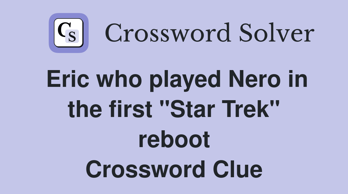 Eric who played Nero in the first quot Star Trek quot reboot Crossword Clue