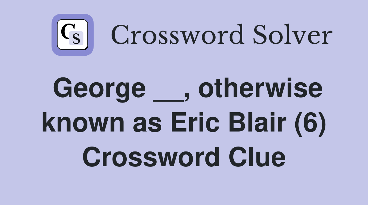 George otherwise known as Eric Blair (6) Crossword Clue Answers