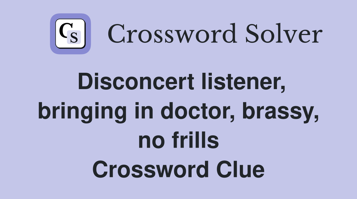 Disconcert listener bringing in doctor brassy no frills Crossword
