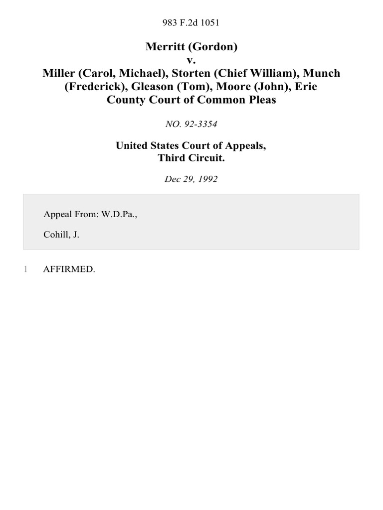 Merritt (Gordon) v Miller (Carol Michael) Storten (Chief William