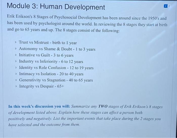Solved Erik Erikson s 8 Stages of Psychosocial Development Chegg com