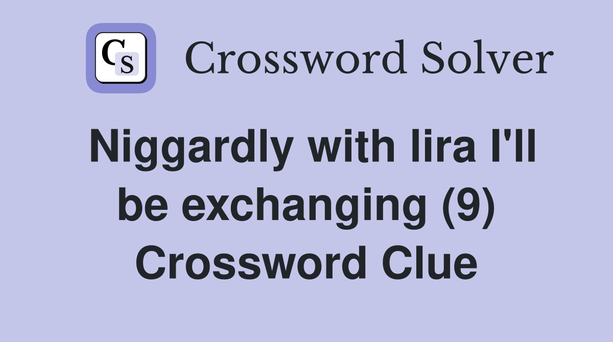 Niggardly with lira I #39 ll be exchanging (9) Crossword Clue Answers