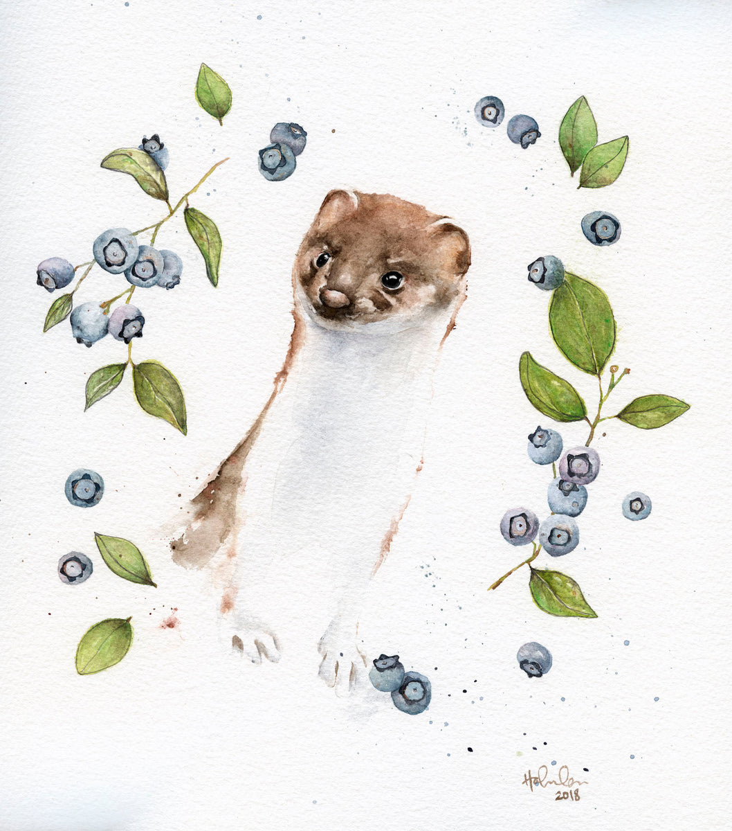 Watercolor 8 x10 Summer Ermine Frost and Fur