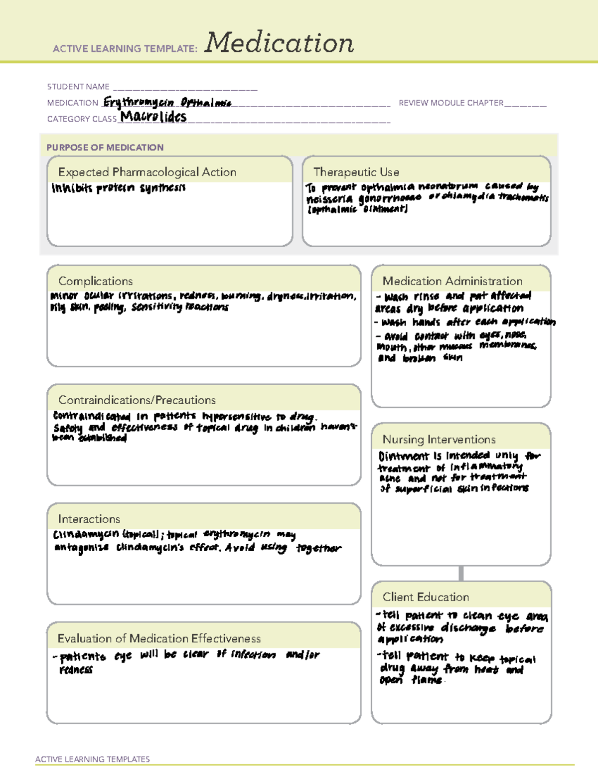SOLUTION: Ati active learning template medication erythromycin