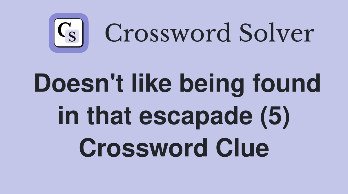 Doesn #39 t like being found in that escapade (5) Crossword Clue Answers