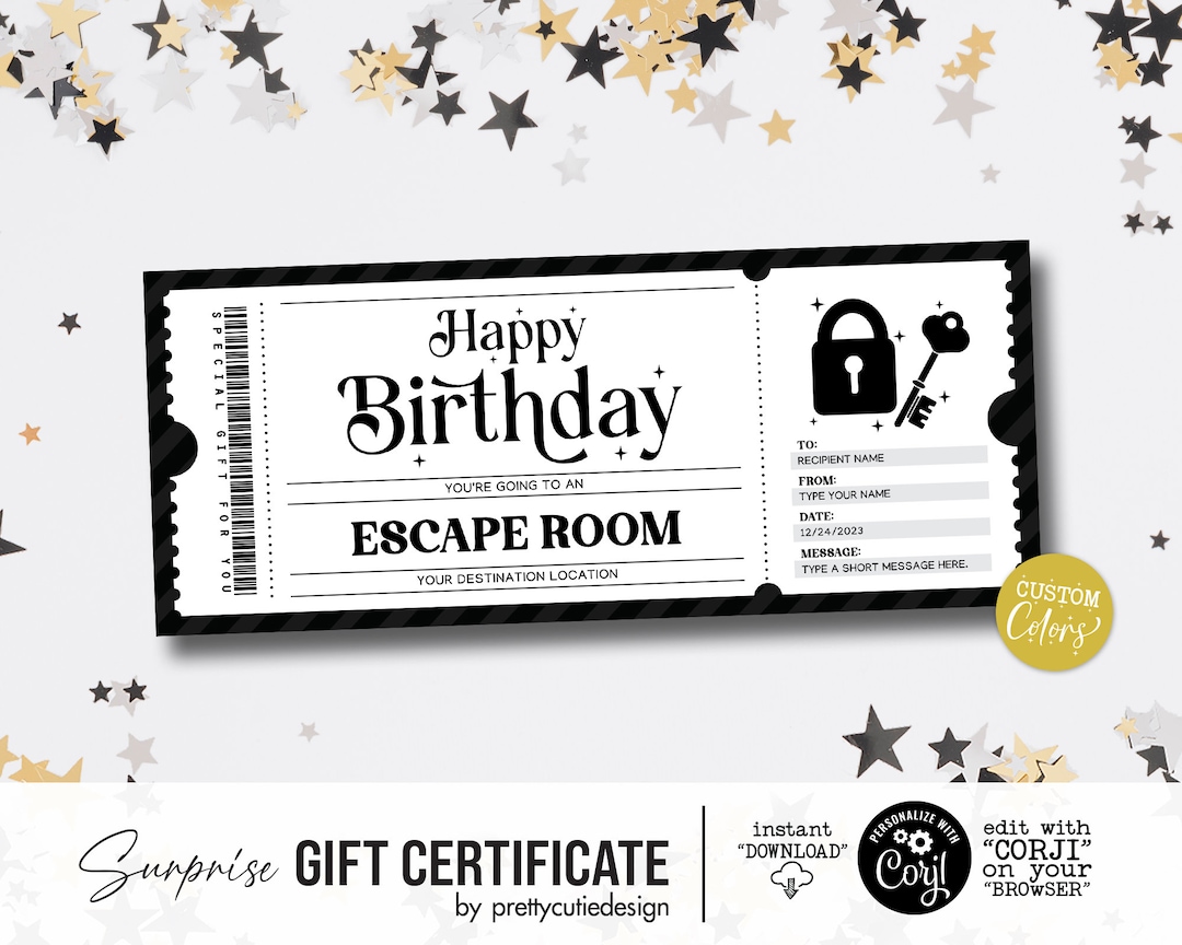 Birthday Escape Room Ticket Editable Template Surprise Game Room Gift