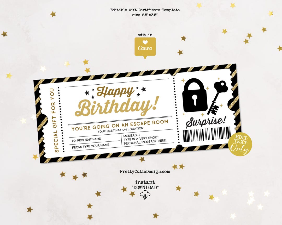 Escape Room Gift Certificate Editable Template Birthday Surprise