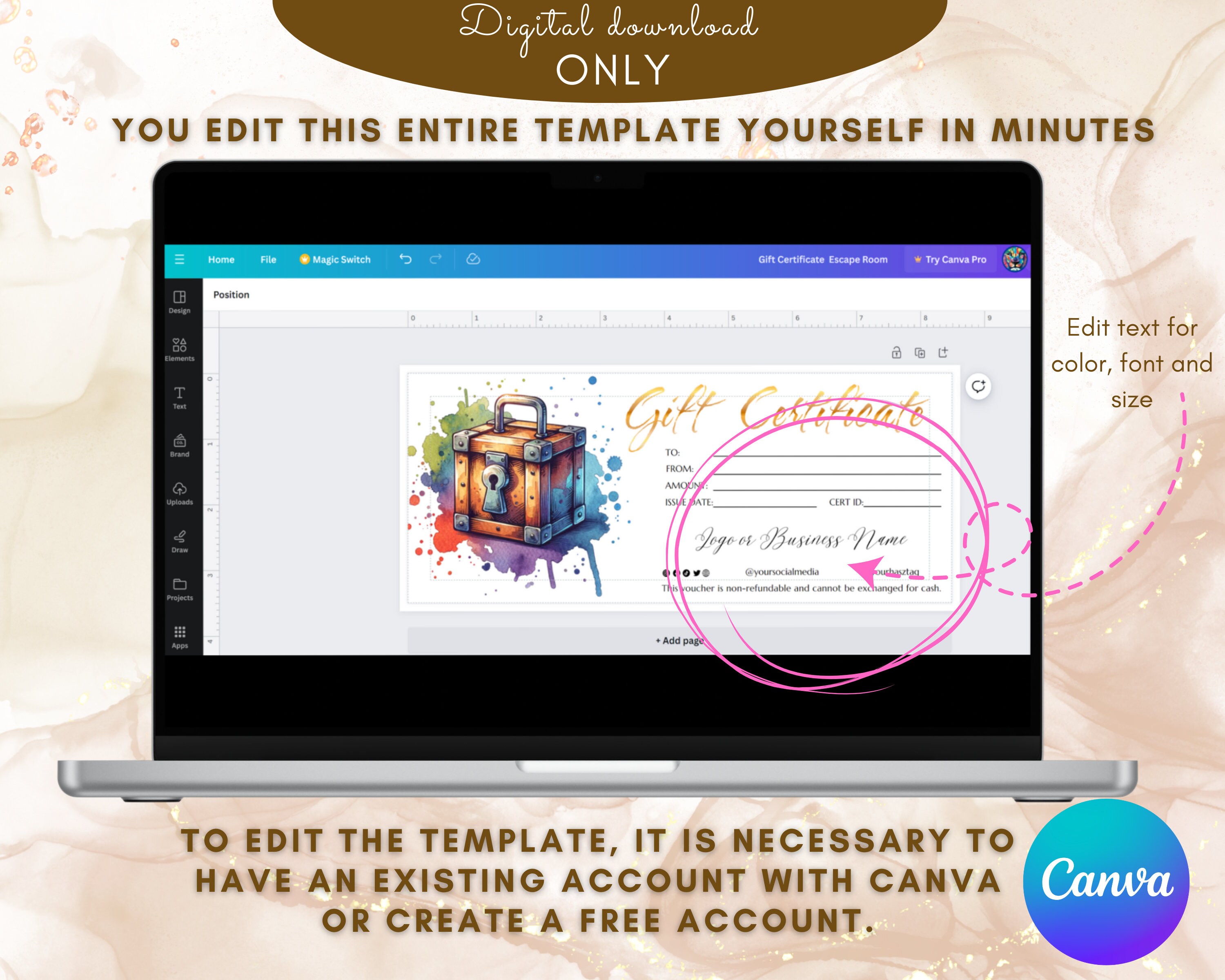 Escape Room Gift Coupon Instant Download Editable Text Printable
