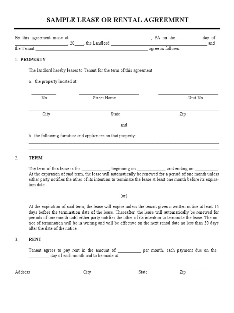 Sample Printable Standard Lease Agreement Forms Template 2024