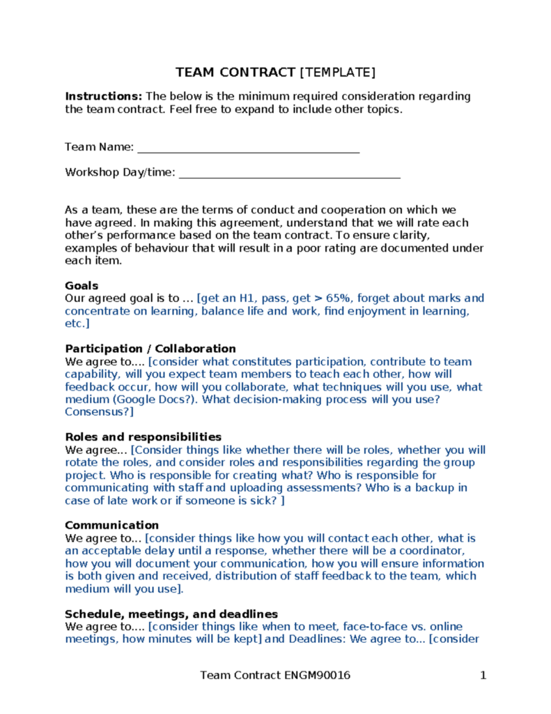 Team Contract Template 1 Team Contract Team Name: Our Commitment to