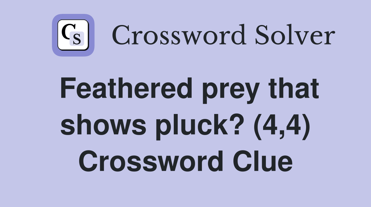 Feathered prey that shows pluck? (4 4) Crossword Clue Answers