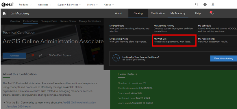 Esri Academy My Wish List Esri Technical Certification