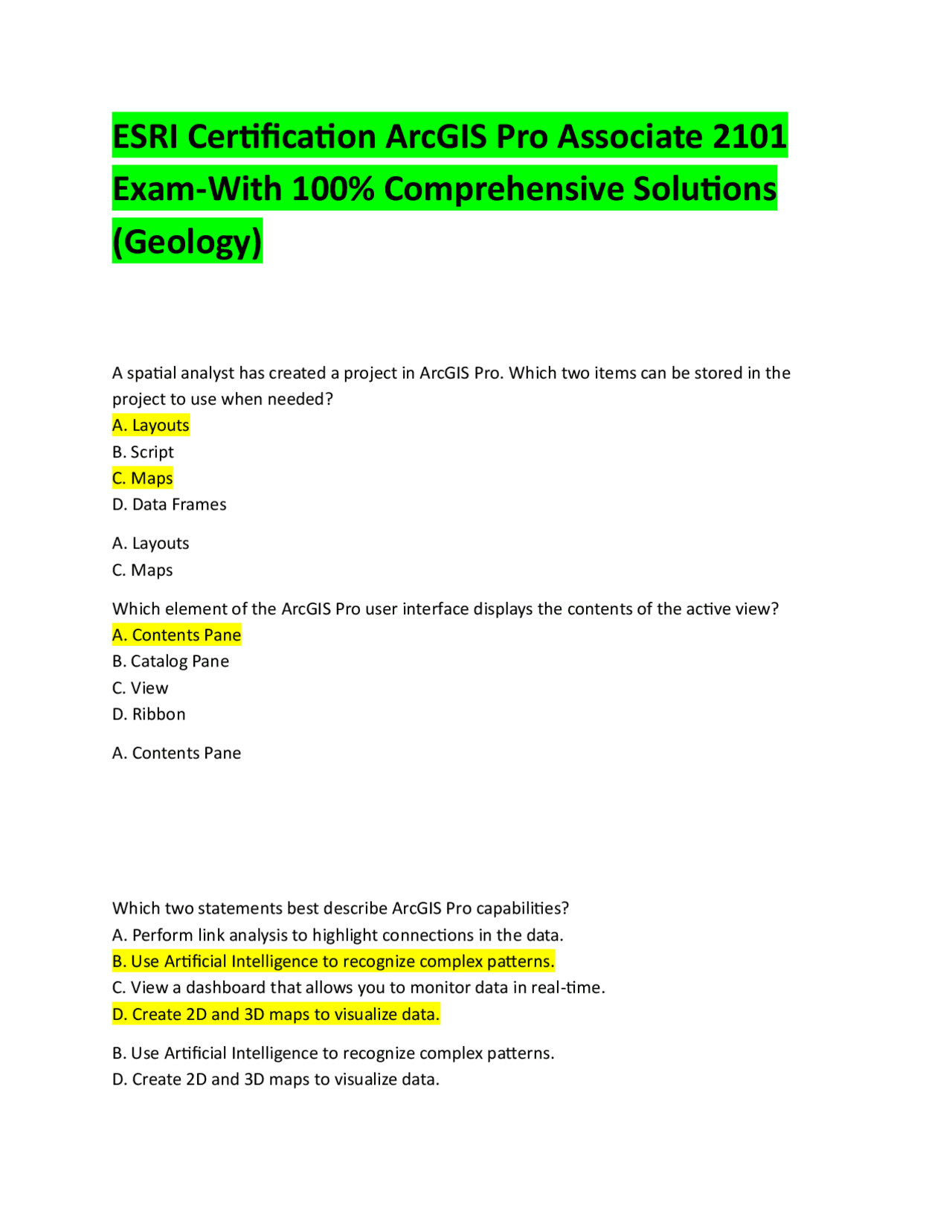 Esri Pro Associate Certification 2024 2025 Questions And Answers ESRI